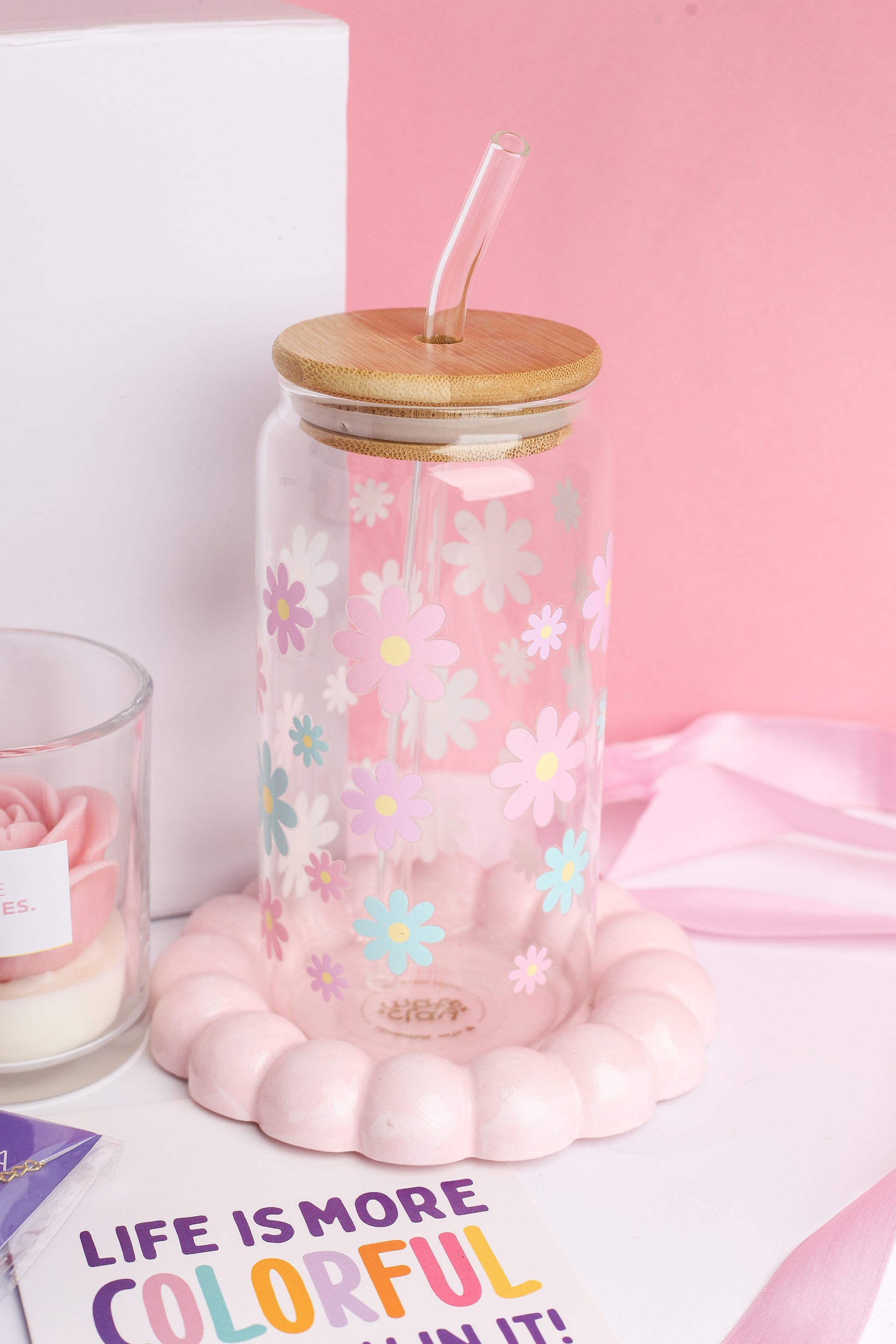🎀 Pastel Flowers Glass Can