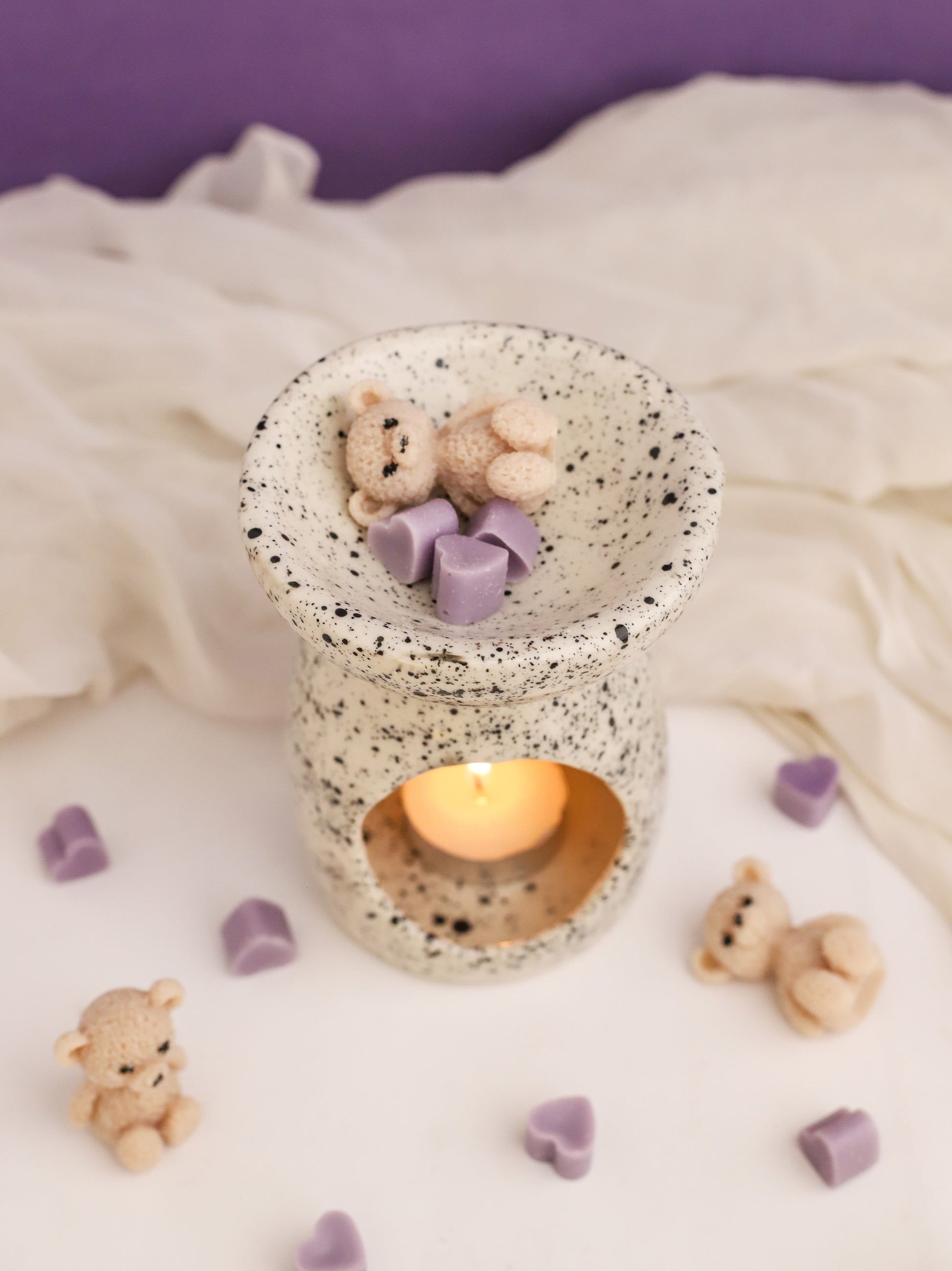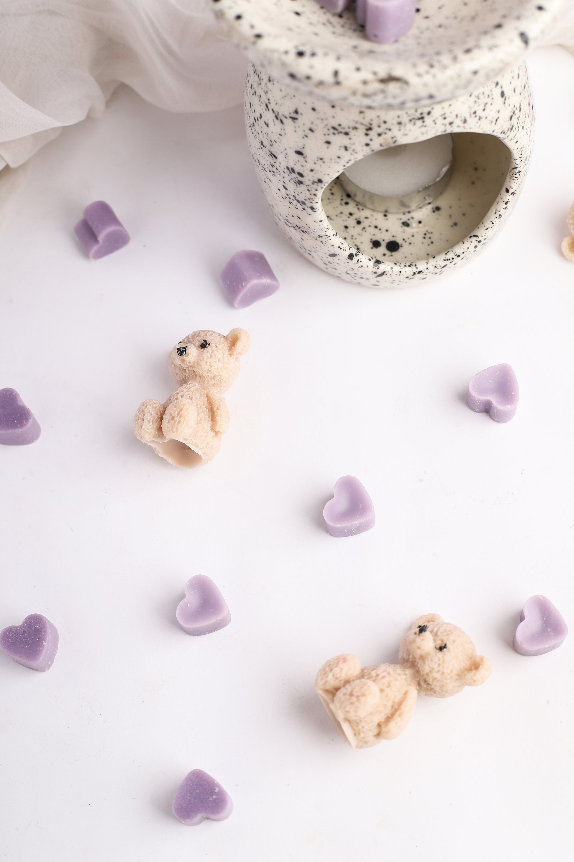 Wrap yourself in the warm and comforting scent of Vanilla and Cardamom with our adorable Bear Hugs Wax Melts. Shaped like tiny teddy bears and sprinkled with small purple hearts, these melts are as charming as they are aromatic.