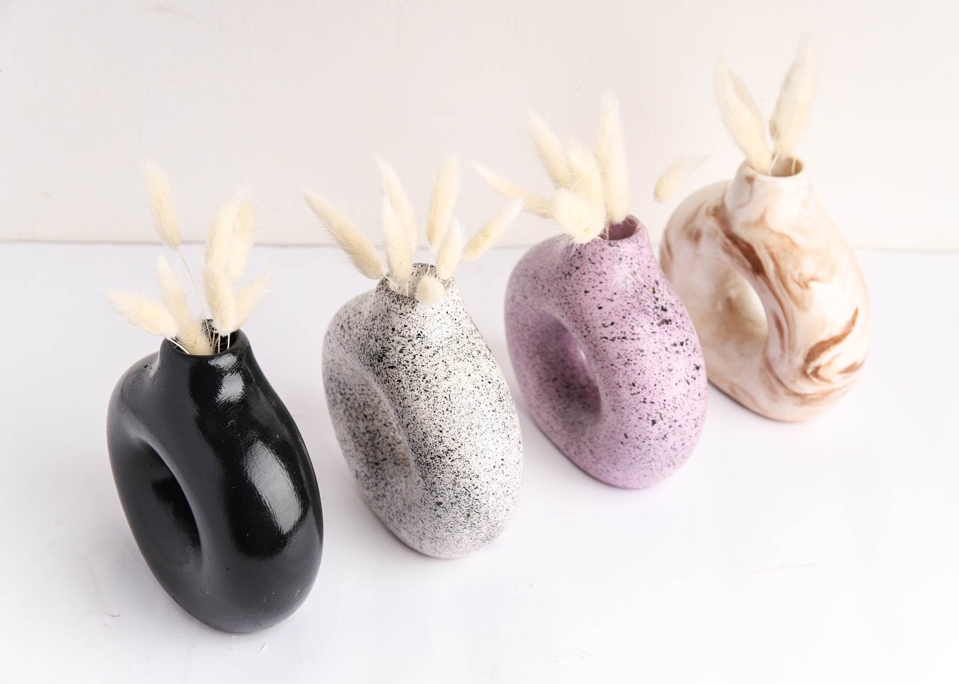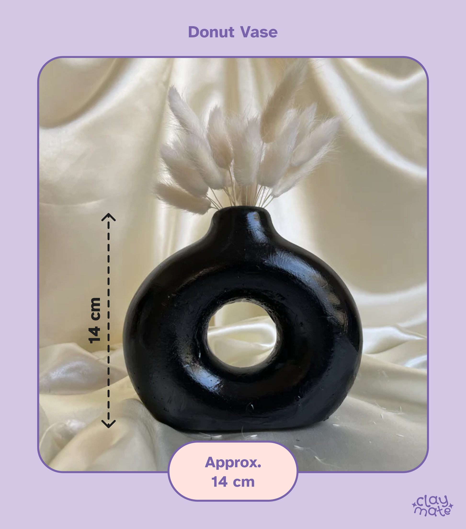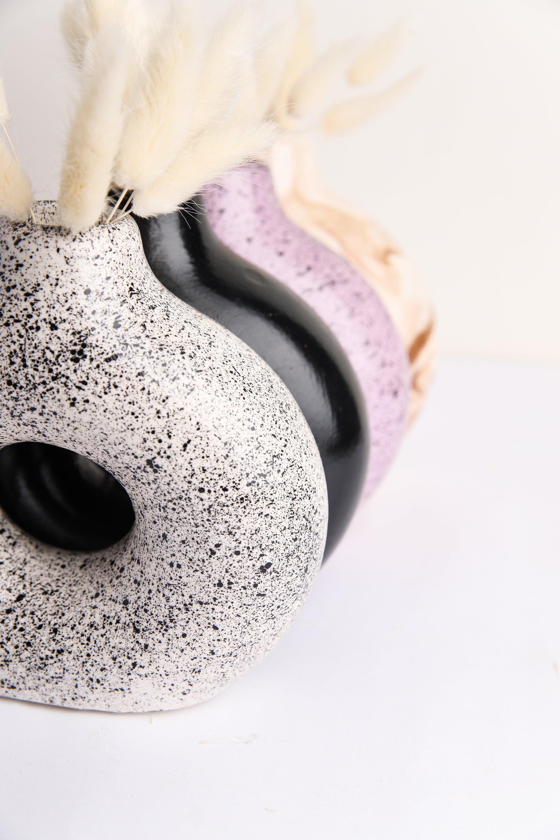 This stylish donut-shaped vase adds a contemporary touch to any space. Perfect for dried flowers, pampas grass, or as a statement piece on its own.