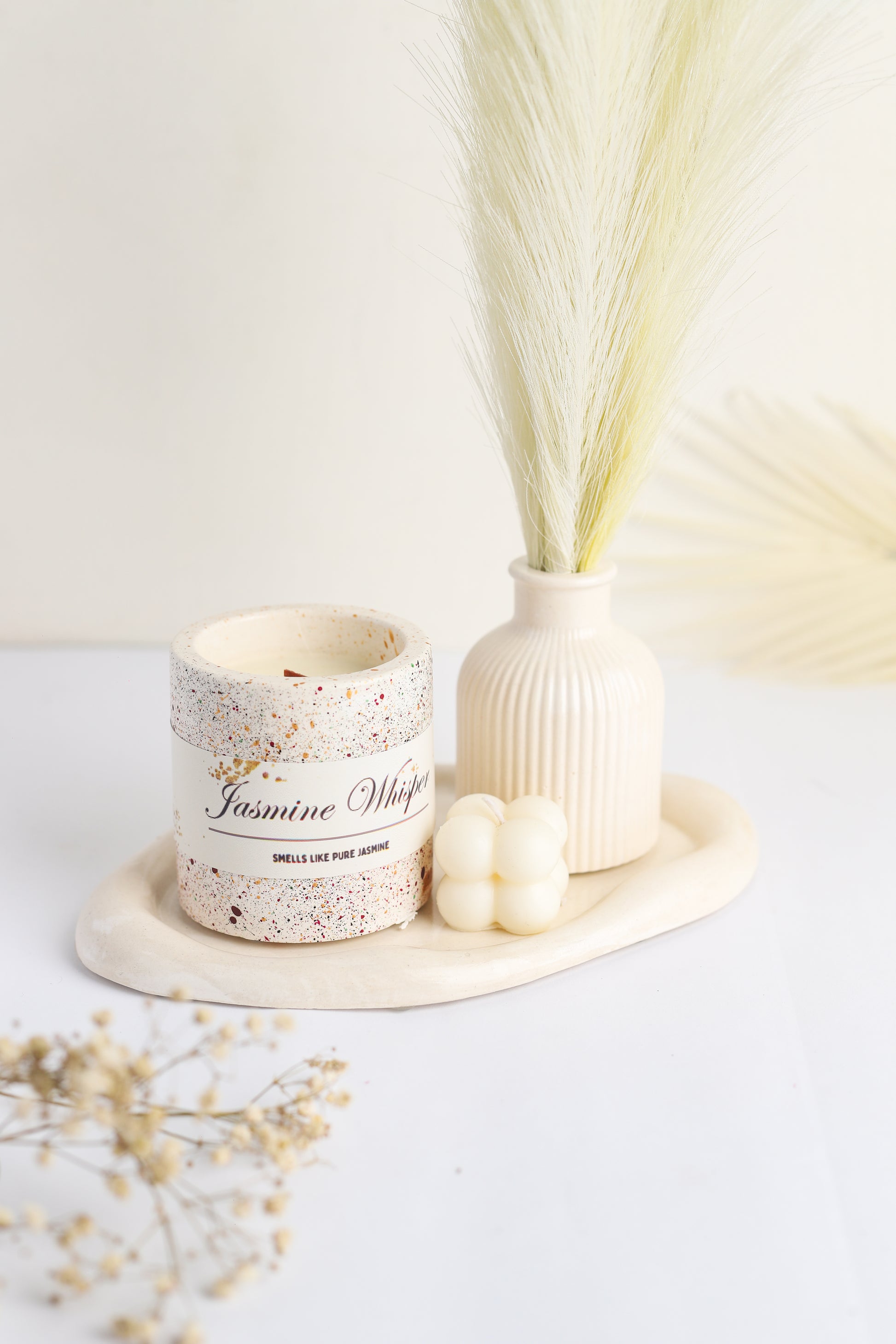 *Price is only for stone candle, tray, pampas grass and vase not included.