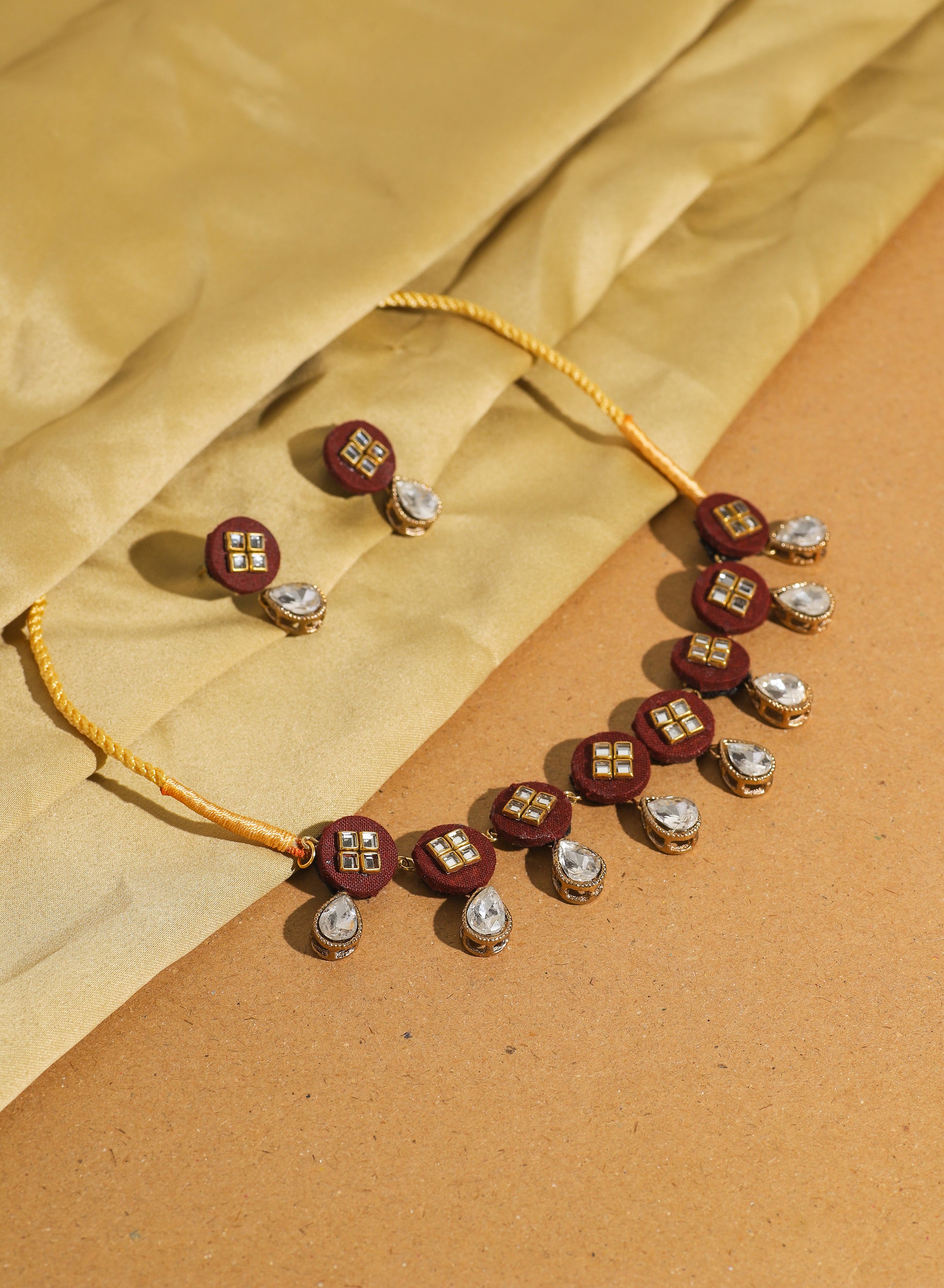 A timeless blend of tradition and charm, this handcrafted Kundan set features an elegant necklace paired with subtle yet graceful earrings.