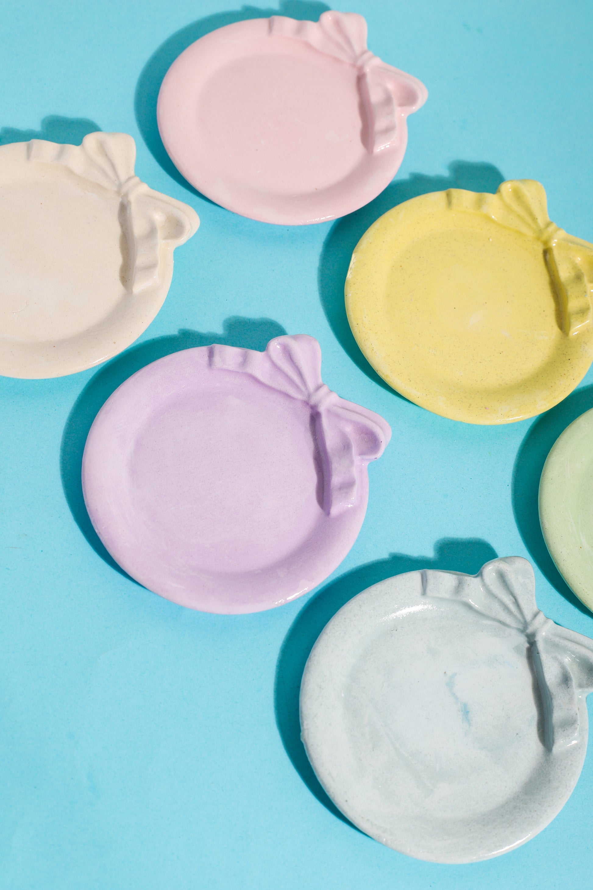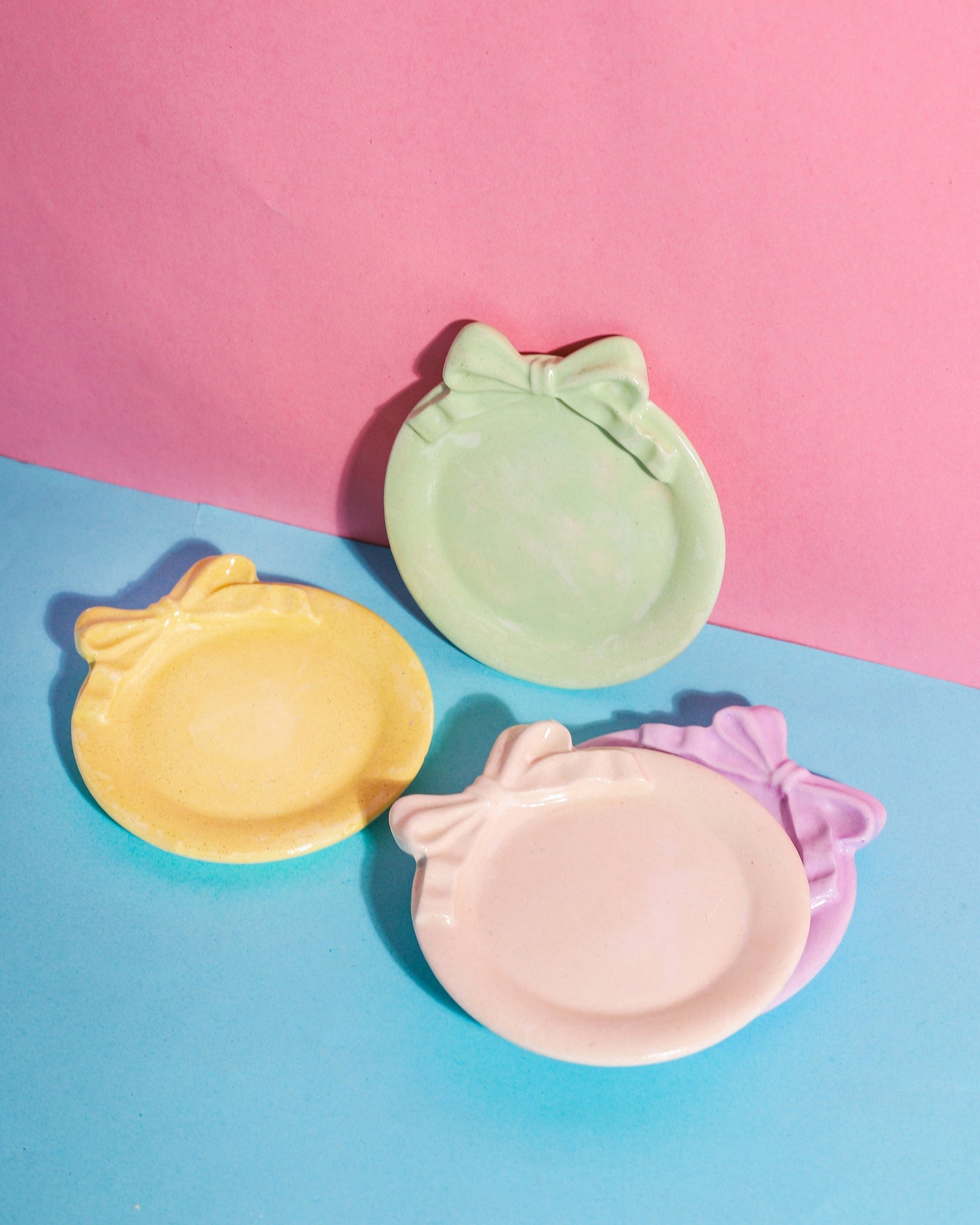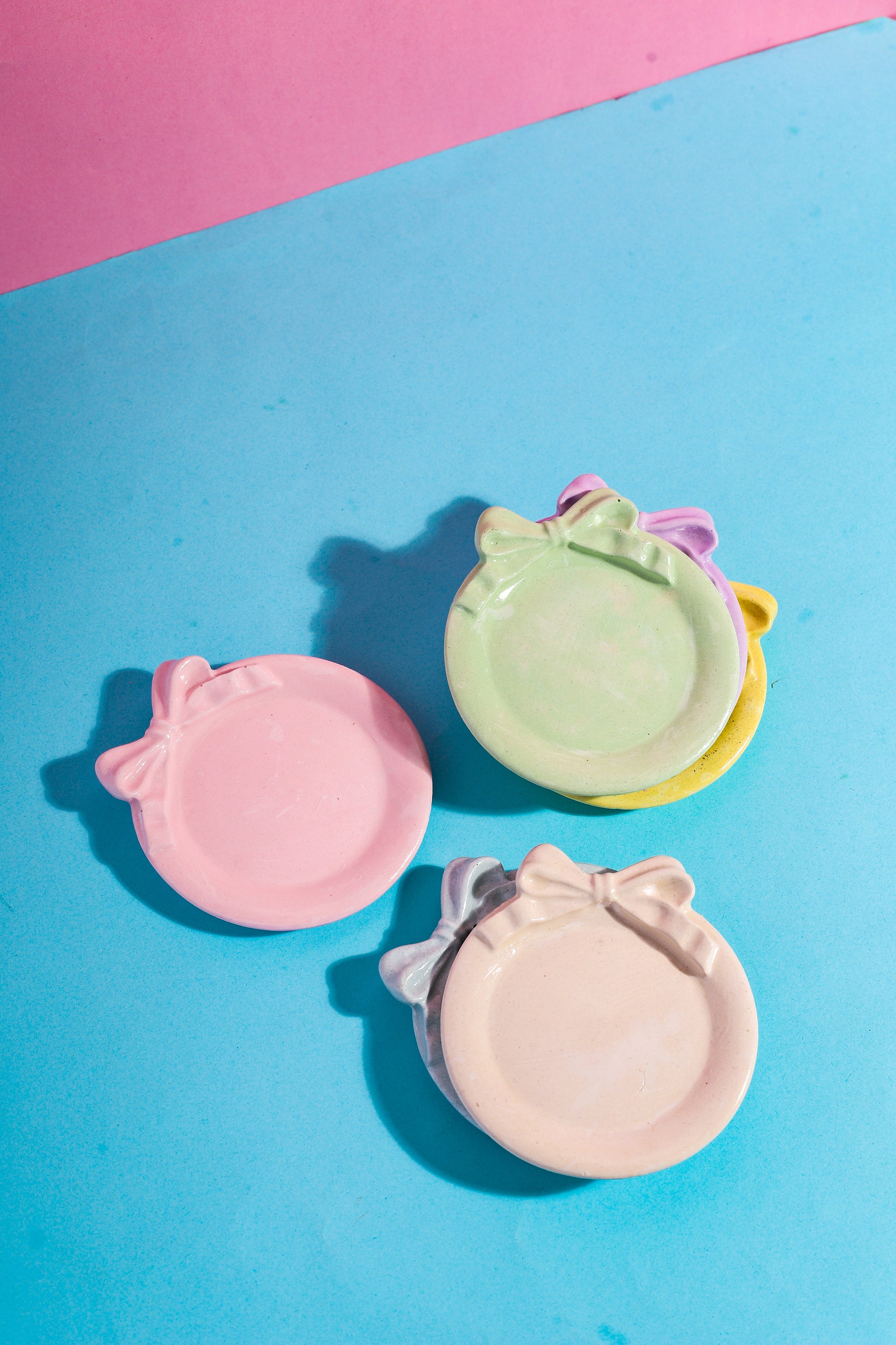 π This Mini Bow Tray is perfect for holding jewelry, keys, or small trinkets. The bow-shaped design and soft pastel colors make it a stylish addition to any space.