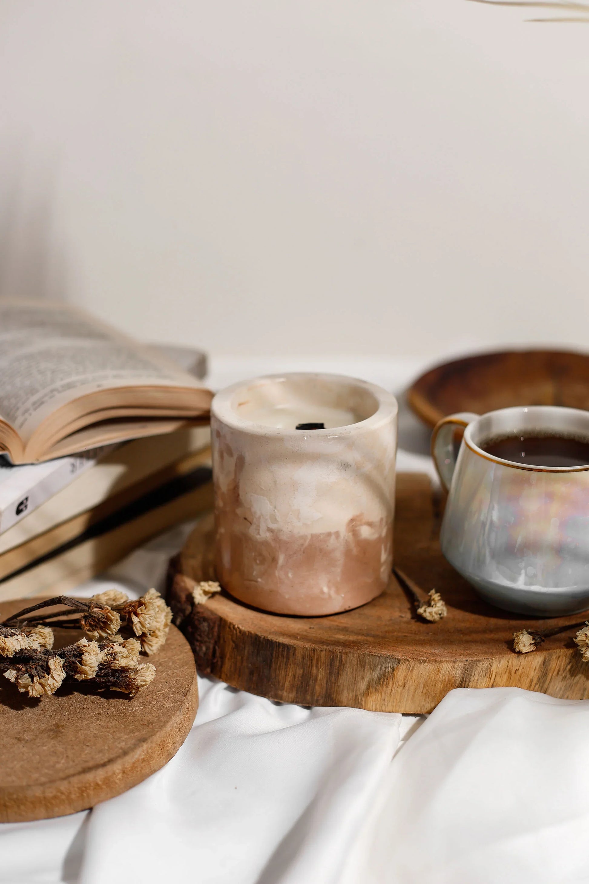 We use a bee-soy wax blend, which is 100% non-toxic, eco-friendly, and burns cleaner than paraffin. That means no harmful fumes, just cozy, safe vibes.